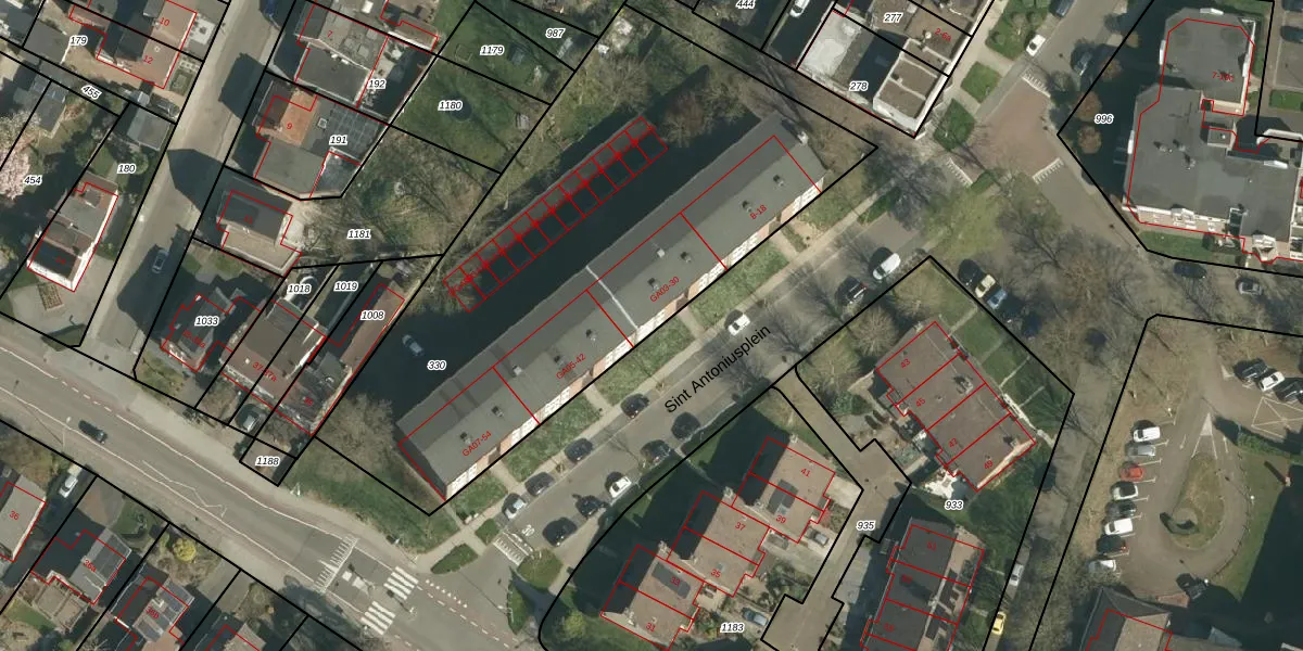 Het perceel waarop Sint Antoniusplein 26 staat heeft een oppervlakte van 2750 m². Dit is een zeer groot perceel. De perceeloppervlakte wordt geregistreerd door het Kadaster. Gedetailleerde informatie over de maten van dit perceel kunt u vinden in het rapport Kadastrale kaart met maatvoering van Sint Antoniusplein 26.