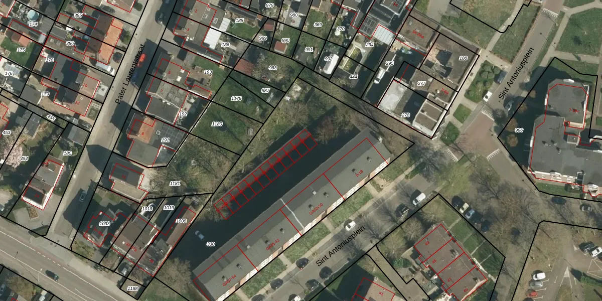 Het perceel waarop Sint Antoniusplein 8-GA19 staat heeft een oppervlakte van 2750 m². Dit is een zeer groot perceel. De perceeloppervlakte wordt geregistreerd door het Kadaster. Gedetailleerde informatie over de maten van dit perceel kunt u vinden in het rapport Kadastrale kaart met maatvoering van Sint Antoniusplein 8-GA19.
