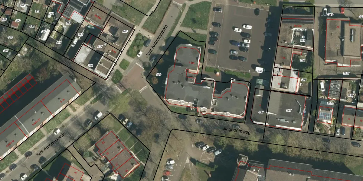 Het perceel waarop Sint Antoniusplein 9-a staat heeft een oppervlakte van 1560 m². Dit is een zeer groot perceel. De perceeloppervlakte wordt geregistreerd door het Kadaster. Gedetailleerde informatie over de maten van dit perceel kunt u vinden in het rapport Kadastrale kaart met maatvoering van Sint Antoniusplein 9-a.