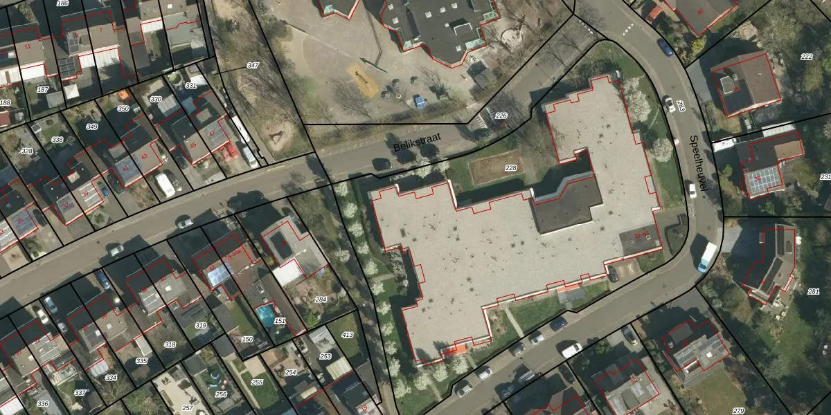 Speelheuvel 43 is gelegen op kadastraal perceel STE00L228. Deze kadastrale aanduiding is uniek en wordt gebruikt door het Kadaster om eigendomsrechten en andere zakelijke rechten vast te leggen. Het perceel maakt onderdeel uit van de kadastrale gemeente Stein.