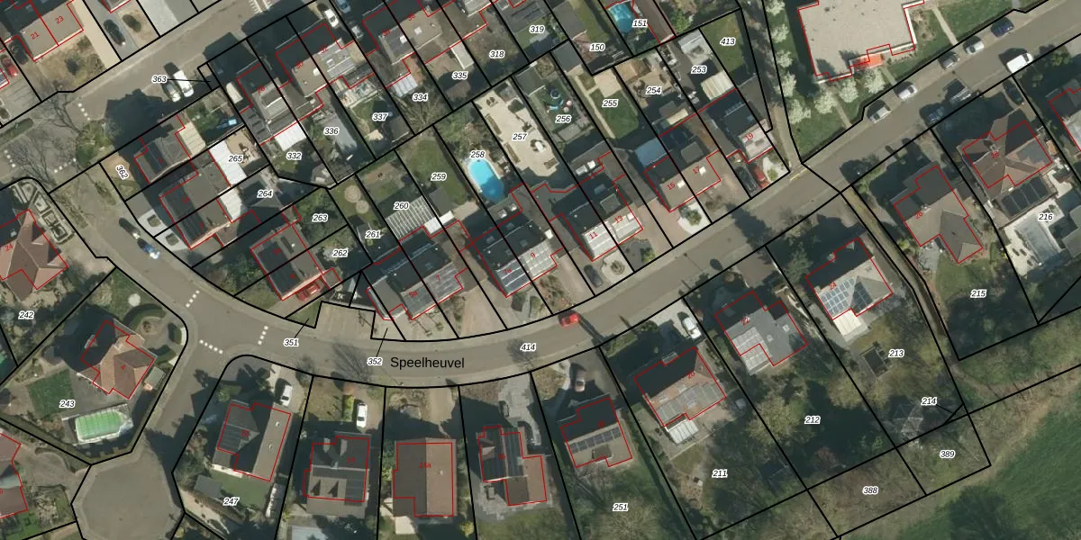 Het perceel waarop Speelheuvel 9 staat heeft een oppervlakte van 360 m². Dit is een groot perceel. De perceeloppervlakte wordt geregistreerd door het Kadaster. Gedetailleerde informatie over de maten van dit perceel kunt u vinden in het rapport Kadastrale kaart met maatvoering van Speelheuvel 9.