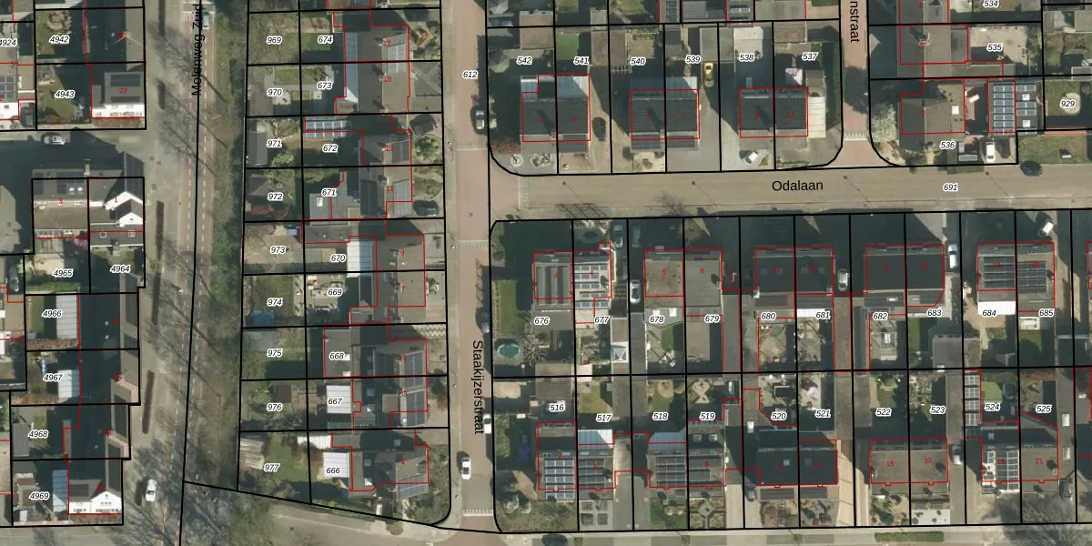 Gebruik de zoekbalk of klik op een perceel voor informatie over de adressen binnen dit perceel.