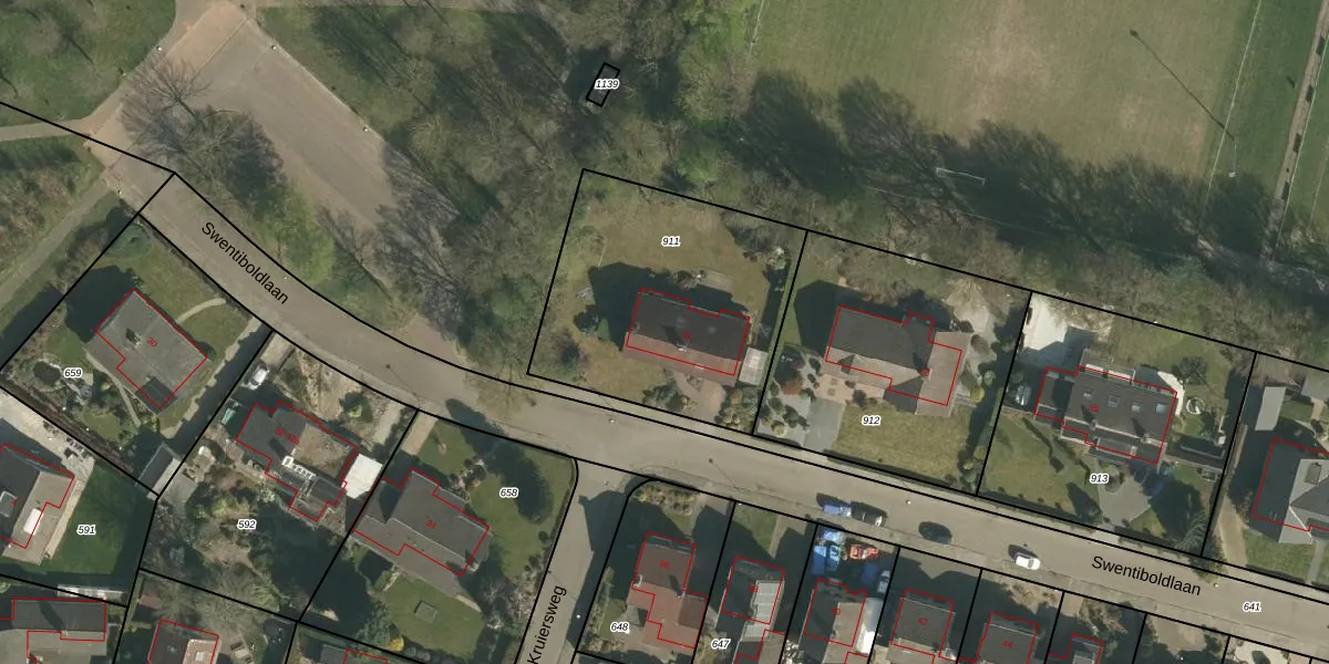 Het perceel waarop Swentiboldlaan 31 staat heeft een oppervlakte van 1120 m². Dit is een zeer groot perceel. De perceeloppervlakte wordt geregistreerd door het Kadaster. Gedetailleerde informatie over de maten van dit perceel kunt u vinden in het rapport Kadastrale kaart met maatvoering van Swentiboldlaan 31.