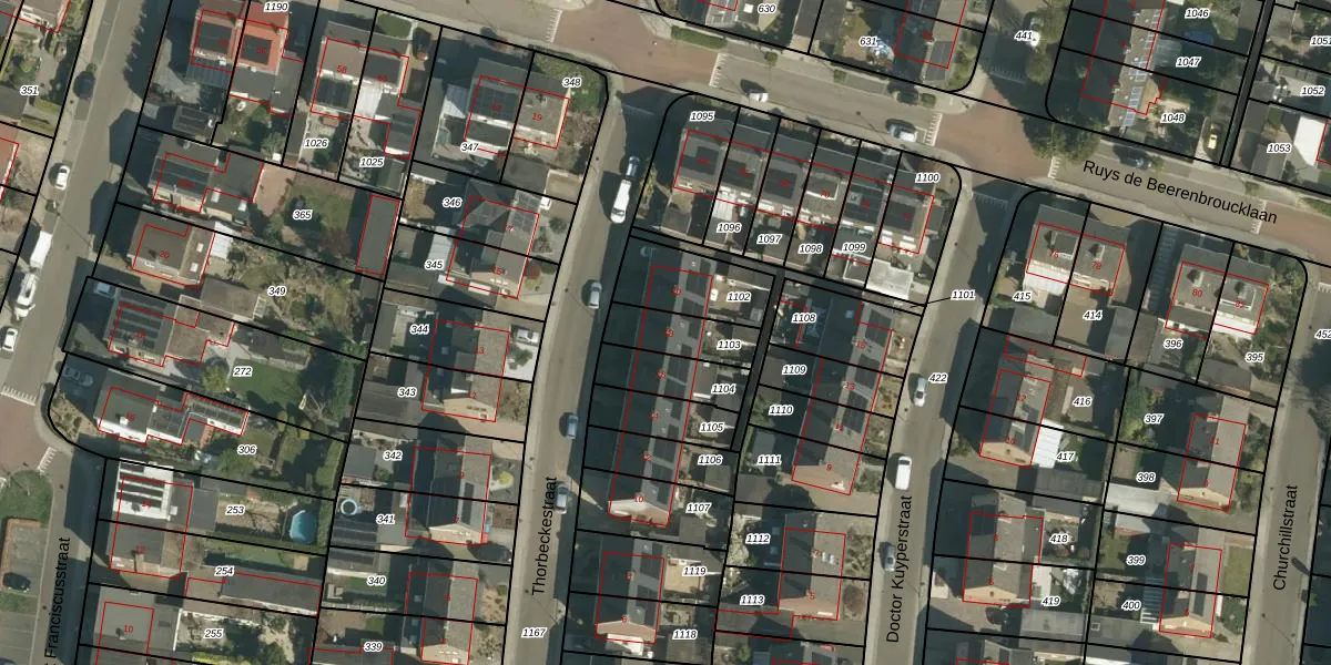 Het perceel waarop Thorbeckestraat 18 staat heeft een oppervlakte van 145 m². Dit is een middelgroot perceel. De perceeloppervlakte wordt geregistreerd door het Kadaster. Gedetailleerde informatie over de maten van dit perceel kunt u vinden in het rapport Kadastrale kaart met maatvoering van Thorbeckestraat 18.