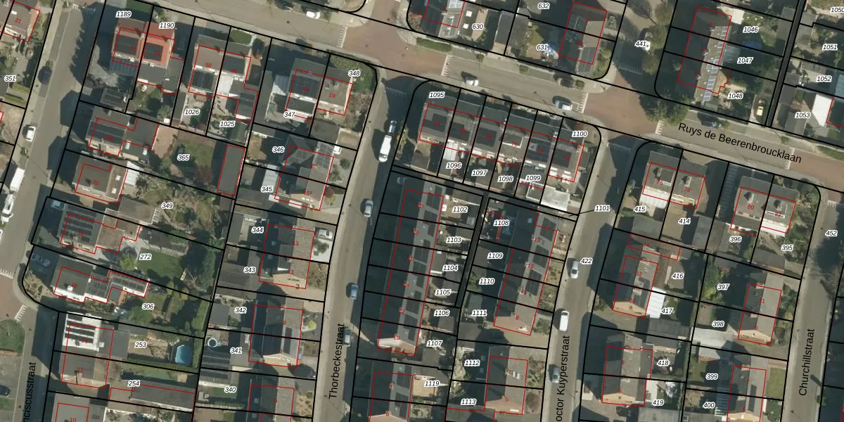 Het perceel waarop Thorbeckestraat 20 staat heeft een oppervlakte van 210 m². Dit is een middelgroot perceel. De perceeloppervlakte wordt geregistreerd door het Kadaster. Gedetailleerde informatie over de maten van dit perceel kunt u vinden in het rapport Kadastrale kaart met maatvoering van Thorbeckestraat 20.