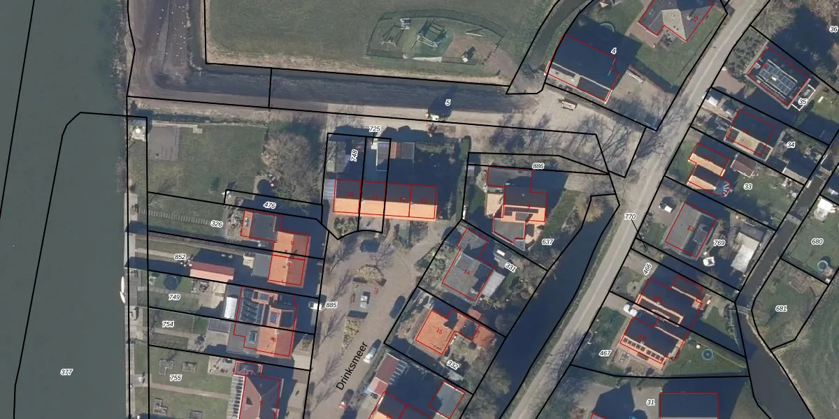Het perceel waarop Drinksmeer 13 staat heeft een oppervlakte van 4198 m². Dit is een zeer groot perceel. De perceeloppervlakte wordt geregistreerd door het Kadaster. Gedetailleerde informatie over de maten van dit perceel kunt u vinden in het rapport Kadastrale kaart met maatvoering van Drinksmeer 13.