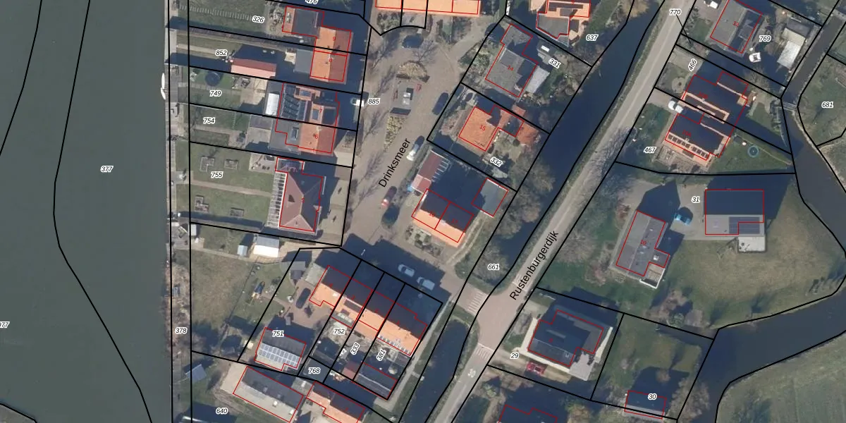 Het perceel waarop Drinksmeer 16 staat heeft een oppervlakte van 4198 m². Dit is een zeer groot perceel. De perceeloppervlakte wordt geregistreerd door het Kadaster. Gedetailleerde informatie over de maten van dit perceel kunt u vinden in het rapport Kadastrale kaart met maatvoering van Drinksmeer 16.
