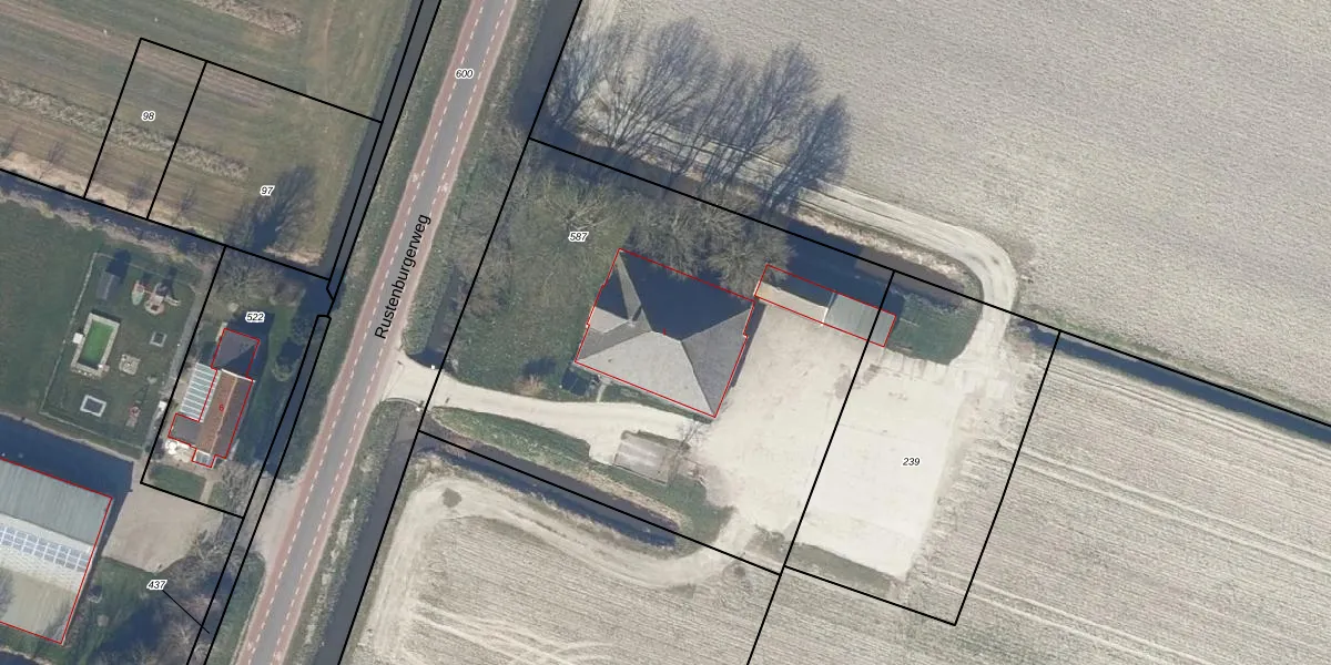 Rustenburgerweg 1 is gelegen op kadastraal perceel SMR01U587. Deze kadastrale aanduiding is uniek en wordt gebruikt door het Kadaster om eigendomsrechten en andere zakelijke rechten vast te leggen. Het perceel maakt onderdeel uit van de kadastrale gemeente Schermer.