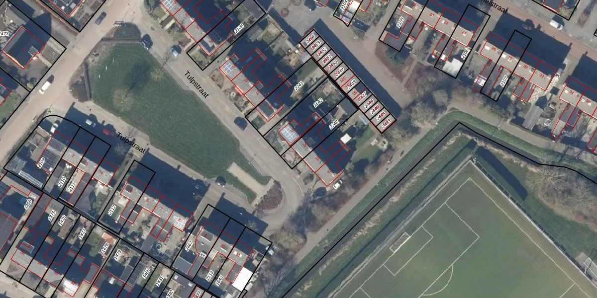 Het perceel waarop Tulpstraat 14 staat heeft een oppervlakte van 180 m². Dit is een middelgroot perceel. De perceeloppervlakte wordt geregistreerd door het Kadaster. Gedetailleerde informatie over de maten van dit perceel kunt u vinden in het rapport Kadastrale kaart met maatvoering van Tulpstraat 14.