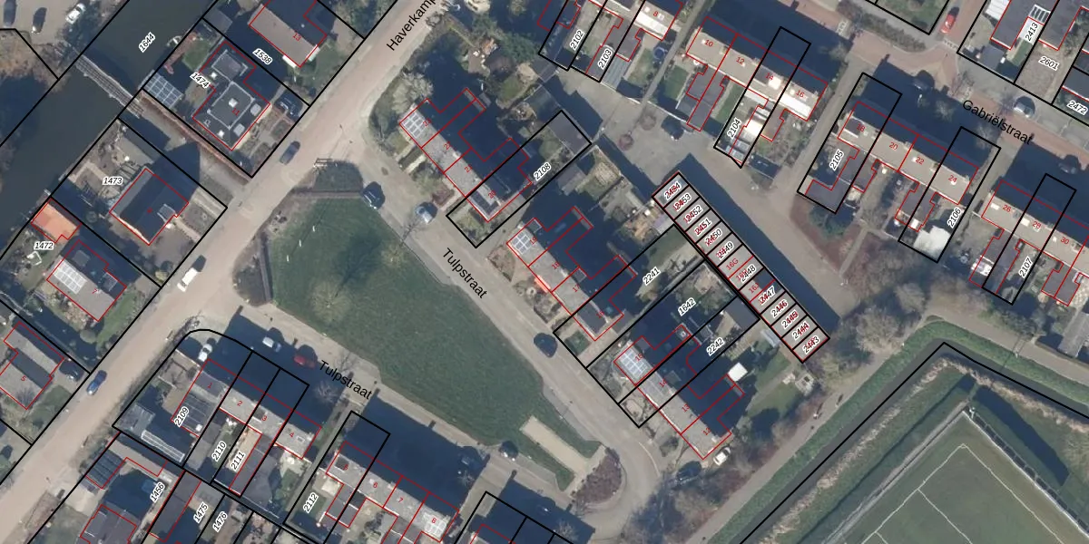 Het perceel waarop Tulpstraat 18 staat heeft een oppervlakte van 4,2 ha. Dit is een zeer groot perceel. De perceeloppervlakte wordt geregistreerd door het Kadaster. Gedetailleerde informatie over de maten van dit perceel kunt u vinden in het rapport Kadastrale kaart met maatvoering van Tulpstraat 18.