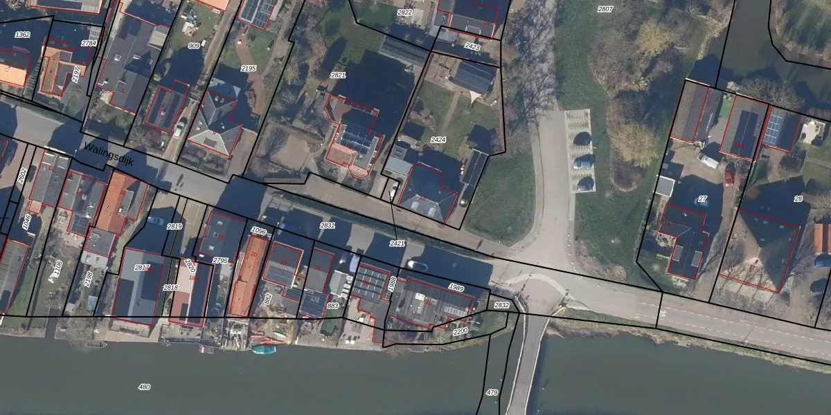 Het perceel waarop Walingsdijk 13 staat heeft een oppervlakte van 840 m². Dit is een groot perceel. De perceeloppervlakte wordt geregistreerd door het Kadaster. Gedetailleerde informatie over de maten van dit perceel kunt u vinden in het rapport Kadastrale kaart met maatvoering van Walingsdijk 13.