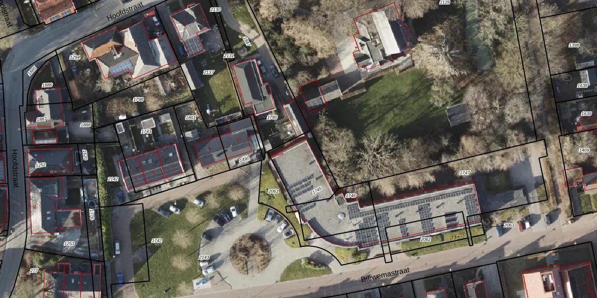 Het perceel waarop Biewemastraat 15-A staat heeft een oppervlakte van 335 m². Dit is een groot perceel. De perceeloppervlakte wordt geregistreerd door het Kadaster. Gedetailleerde informatie over de maten van dit perceel kunt u vinden in het rapport Kadastrale kaart met maatvoering van Biewemastraat 15-A.