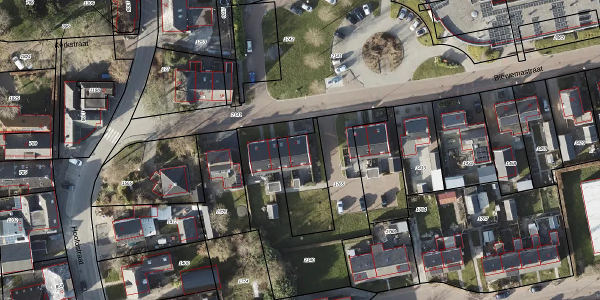Het perceel waarop Biewemastraat 8 staat heeft een oppervlakte van 475 m². Dit is een groot perceel. De perceeloppervlakte wordt geregistreerd door het Kadaster. Gedetailleerde informatie over de maten van dit perceel kunt u vinden in het rapport Kadastrale kaart met maatvoering van Biewemastraat 8.