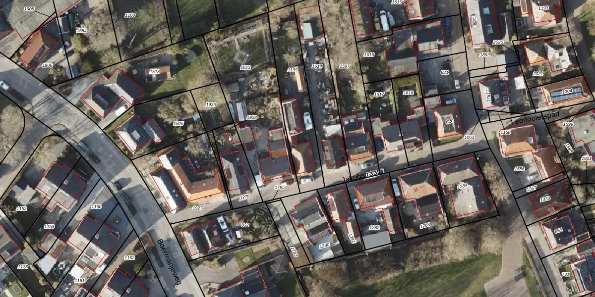 Het perceel waarop Jakobstraat 5 staat heeft een oppervlakte van 560 m². Dit is een groot perceel. De perceeloppervlakte wordt geregistreerd door het Kadaster. Gedetailleerde informatie over de maten van dit perceel kunt u vinden in het rapport Kadastrale kaart met maatvoering van Jakobstraat 5.