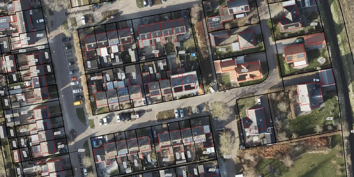 Het perceel waarop Pieter Hutstraat 13 staat heeft een oppervlakte van 1240 m². Dit is een zeer groot perceel. De perceeloppervlakte wordt geregistreerd door het Kadaster. Gedetailleerde informatie over de maten van dit perceel kunt u vinden in het rapport Kadastrale kaart met maatvoering van Pieter Hutstraat 13.