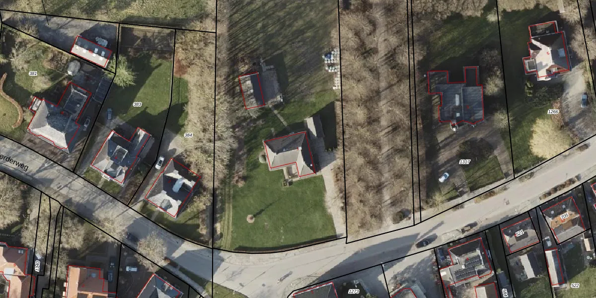 Het perceel waarop Raadhuisstraat 1 staat heeft een oppervlakte van 1,0 ha. Dit is een zeer groot perceel. De perceeloppervlakte wordt geregistreerd door het Kadaster. Gedetailleerde informatie over de maten van dit perceel kunt u vinden in het rapport Kadastrale kaart met maatvoering van Raadhuisstraat 1.