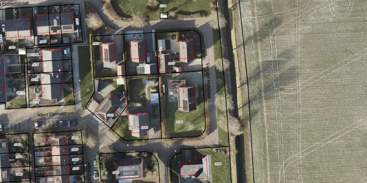 Gebruik de zoekbalk of klik op een perceel voor informatie over de adressen binnen dit perceel.