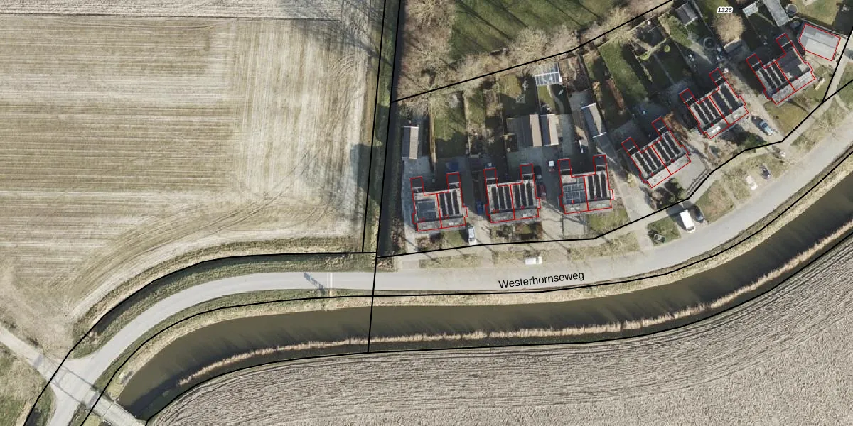 Het perceel waarop Westerhornseweg 12 staat heeft een oppervlakte van 7980 m². Dit is een zeer groot perceel. De perceeloppervlakte wordt geregistreerd door het Kadaster. Gedetailleerde informatie over de maten van dit perceel kunt u vinden in het rapport Kadastrale kaart met maatvoering van Westerhornseweg 12.