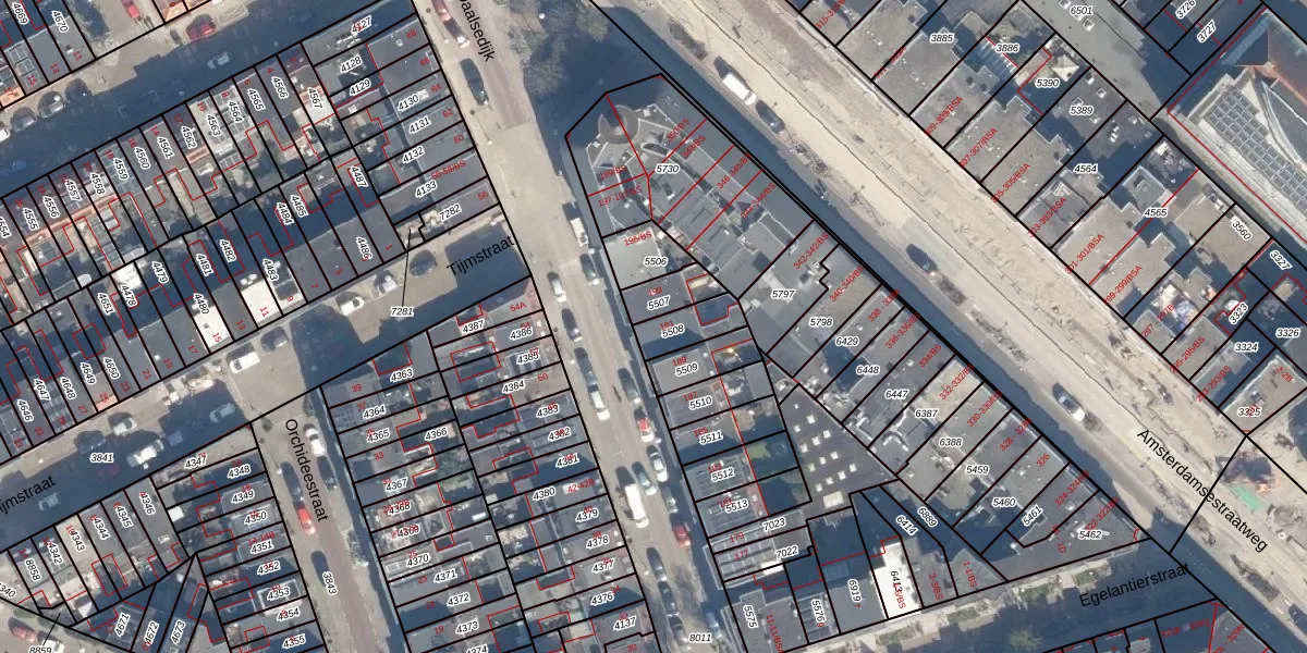 Gebruik de zoekbalk of klik op een perceel voor informatie over de adressen binnen dit perceel.