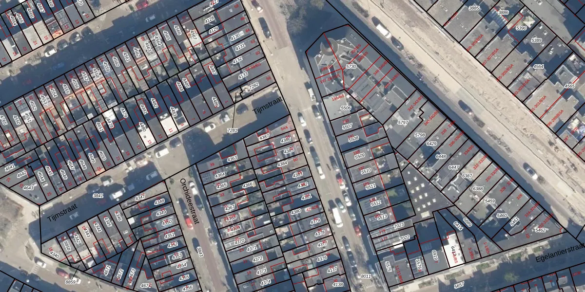 Gebruik de zoekbalk of klik op een perceel voor informatie over de adressen binnen dit perceel.