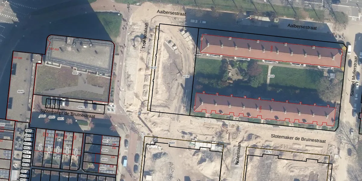 Het perceel waarop Aalbersestraat 12 staat heeft een oppervlakte van 1055 m². Dit is een zeer groot perceel. De perceeloppervlakte wordt geregistreerd door het Kadaster. Gedetailleerde informatie over de maten van dit perceel kunt u vinden in het rapport Kadastrale kaart met maatvoering van Aalbersestraat 12.