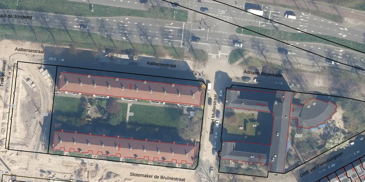 Het perceel waarop Aalbersestraat 2-3 staat heeft een oppervlakte van 4011 m². Dit is een zeer groot perceel. De perceeloppervlakte wordt geregistreerd door het Kadaster. Gedetailleerde informatie over de maten van dit perceel kunt u vinden in het rapport Kadastrale kaart met maatvoering van Aalbersestraat 2-3.
