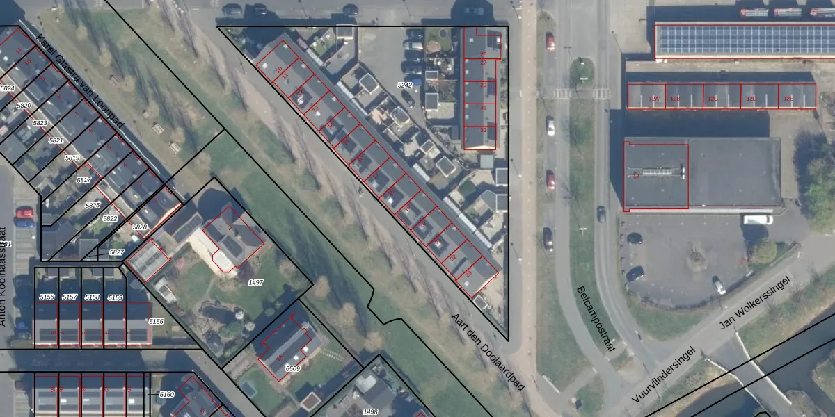 Het perceel waarop Aart den Doolaardpad 19 staat heeft een oppervlakte van 2640 m². Dit is een zeer groot perceel. De perceeloppervlakte wordt geregistreerd door het Kadaster. Gedetailleerde informatie over de maten van dit perceel kunt u vinden in het rapport Kadastrale kaart met maatvoering van Aart den Doolaardpad 19.