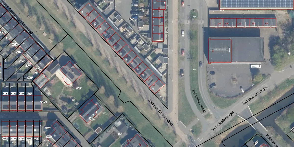 Het adres is gelegen op perceel 5242 in de sectie V en de kadastrale gemeente Utrecht. De kadastrale aanduiding is aldus UTT00-V-5242. De gemiddelde perceeloppervlakte in de kadastrale gemeente Utrecht is 1439,07 m². Dit perceel is met zijn 2640 m² dus groter dan gemiddeld. Het grootste perceel in de kadastrale gemeente is 90,1 ha. Het kleinste perceel heeft een oppervlakte van 0 m². Op het perceel liggen in totaal 19 adressen. In de Basisregistratie Kadaster (BRK) werden de grenzen van het perceel geregistreerd op 31-03-2016.