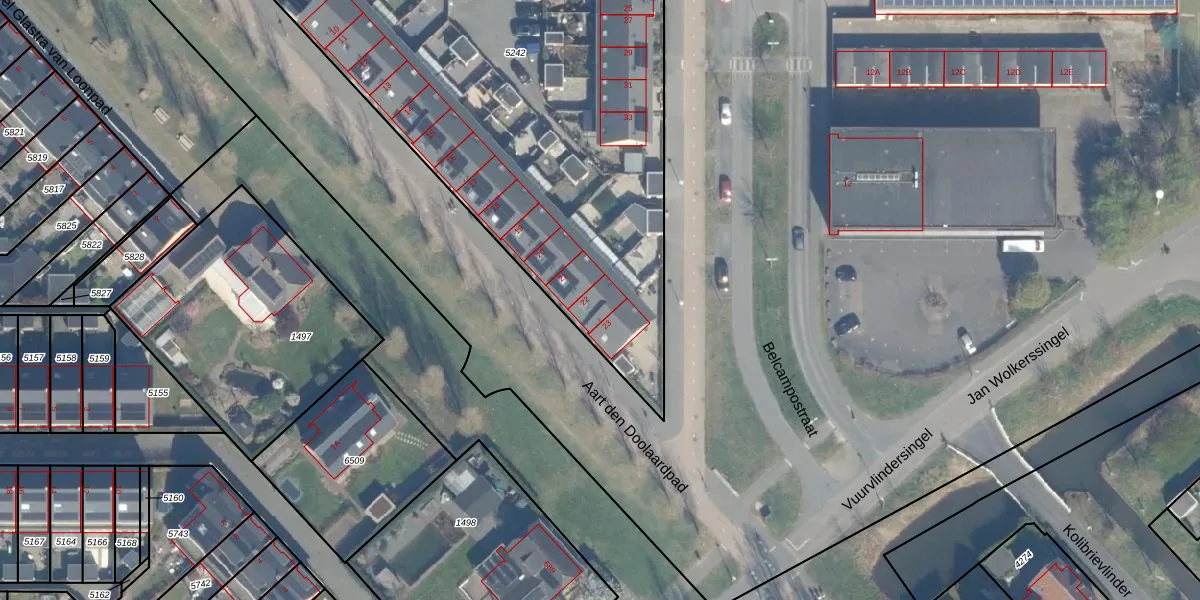 Het adres is gelegen op perceel 5242 in de sectie V en de kadastrale gemeente Utrecht. De kadastrale aanduiding is aldus UTT00-V-5242. De gemiddelde perceeloppervlakte in de kadastrale gemeente Utrecht is 1438,48 m². Dit perceel is met zijn 2640 m² dus groter dan gemiddeld. Het grootste perceel in de kadastrale gemeente is 90,1 ha. Het kleinste perceel heeft een oppervlakte van 0 m². Op het perceel liggen in totaal 19 adressen. De huidige grenzen van het perceel zijn digitaal in de Basisregistratie Kadaster (BRK) geregistreerd op 31-03-2016.