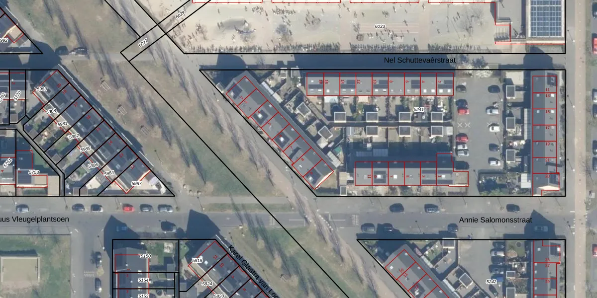 Het adres is gelegen op perceel 5241 in de sectie V en de kadastrale gemeente Utrecht. De kadastrale aanduiding is aldus UTT00-V-5241. De gemiddelde perceeloppervlakte in de kadastrale gemeente Utrecht is 1438,48 m². Dit perceel is met zijn 4380 m² dus groter dan gemiddeld. Het grootste perceel in de kadastrale gemeente is 90,1 ha. Het kleinste perceel heeft een oppervlakte van 0 m². Op het perceel zijn 30 adressen aanwezig. De huidige grenzen van het perceel zijn digitaal in de Basisregistratie Kadaster (BRK) geregistreerd op 31-03-2016.