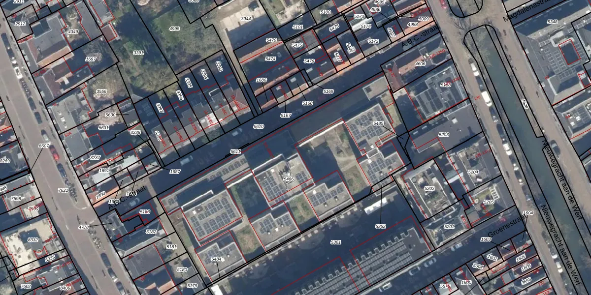 A.B.C.-straat 5-41 is gelegen op kadastraal perceel UTT00B5486. Deze kadastrale aanduiding is uniek en wordt gebruikt door het Kadaster om eigendomsrechten en andere zakelijke rechten vast te leggen. Het perceel maakt onderdeel uit van de kadastrale gemeente Utrecht.