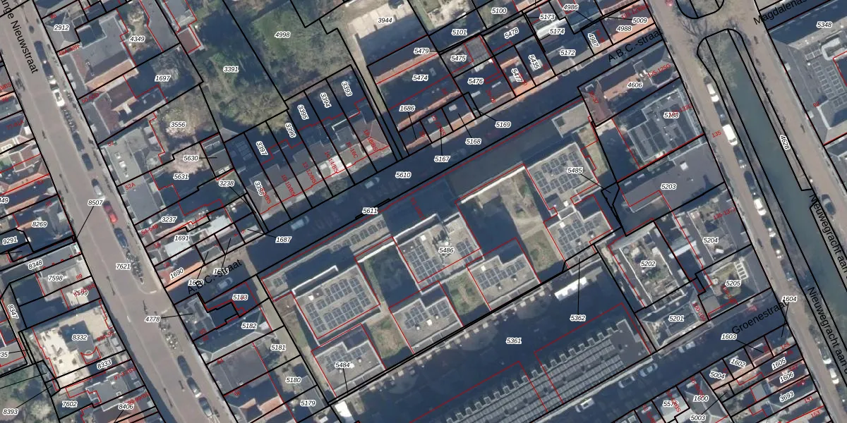 A.B.C.-straat 5-51 is gelegen op kadastraal perceel UTT00B5486. Deze kadastrale aanduiding is uniek en wordt gebruikt door het Kadaster om eigendomsrechten en andere zakelijke rechten vast te leggen. Het perceel maakt onderdeel uit van de kadastrale gemeente Utrecht.