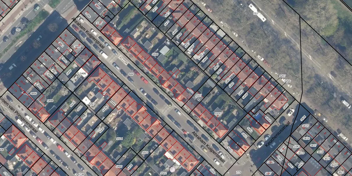 Abraham Kuijperstraat 13 is gelegen op kadastraal perceel ZLN02C5506. Deze kadastrale aanduiding is uniek en wordt gebruikt door het Kadaster om eigendomsrechten en andere zakelijke rechten vast te leggen. Het perceel maakt onderdeel uit van de kadastrale gemeente Zuilen.
