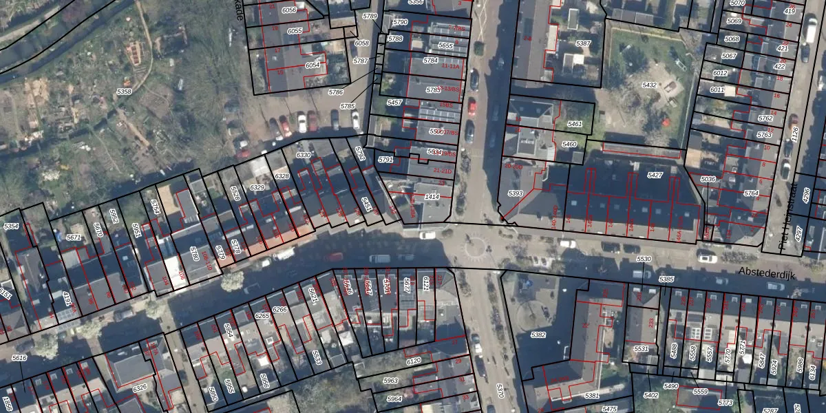 Het perceel waarop Abstederdijk 138-A staat heeft een oppervlakte van 165 m². Dit is een middelgroot perceel. De perceeloppervlakte wordt geregistreerd door het Kadaster. Gedetailleerde informatie over de maten van dit perceel kunt u vinden in het rapport Kadastrale kaart met maatvoering van Abstederdijk 138-A.