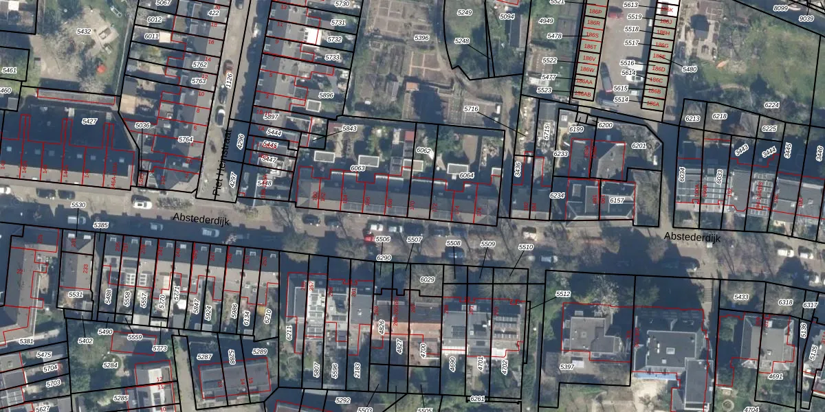 Abstederdijk 170 is gelegen op kadastraal perceel ASD40D6062. Deze kadastrale aanduiding is uniek en wordt gebruikt door het Kadaster om eigendomsrechten en andere zakelijke rechten vast te leggen. Het perceel maakt onderdeel uit van de kadastrale gemeente Abstede.