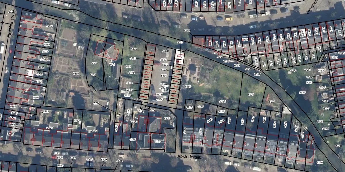 Abstederdijk 186-D is gelegen op kadastraal perceel ASD40D5516. Deze kadastrale aanduiding is uniek en wordt gebruikt door het Kadaster om eigendomsrechten en andere zakelijke rechten vast te leggen. Het perceel maakt onderdeel uit van de kadastrale gemeente Abstede.