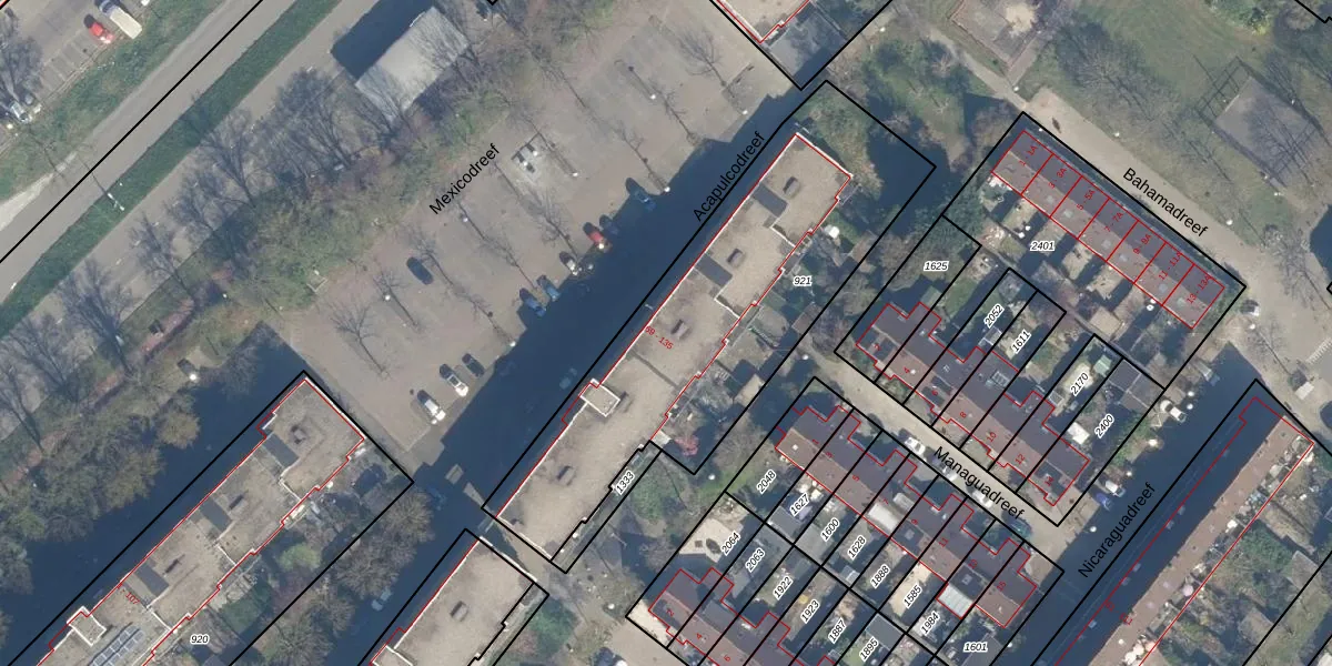 Het perceel waarop Acapulcodreef 125 staat heeft een oppervlakte van 1600 m². Dit is een zeer groot perceel. De perceeloppervlakte wordt geregistreerd door het Kadaster. Gedetailleerde informatie over de maten van dit perceel kunt u vinden in het rapport Kadastrale kaart met maatvoering van Acapulcodreef 125.