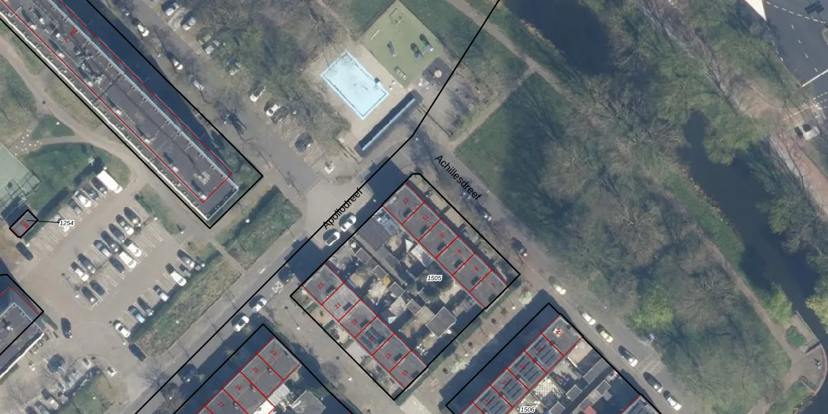 Achillesdreef 12 is gelegen op kadastraal perceel UTT00H1505. Deze kadastrale aanduiding is uniek en wordt gebruikt door het Kadaster om eigendomsrechten en andere zakelijke rechten vast te leggen. Het perceel maakt onderdeel uit van de kadastrale gemeente Utrecht.