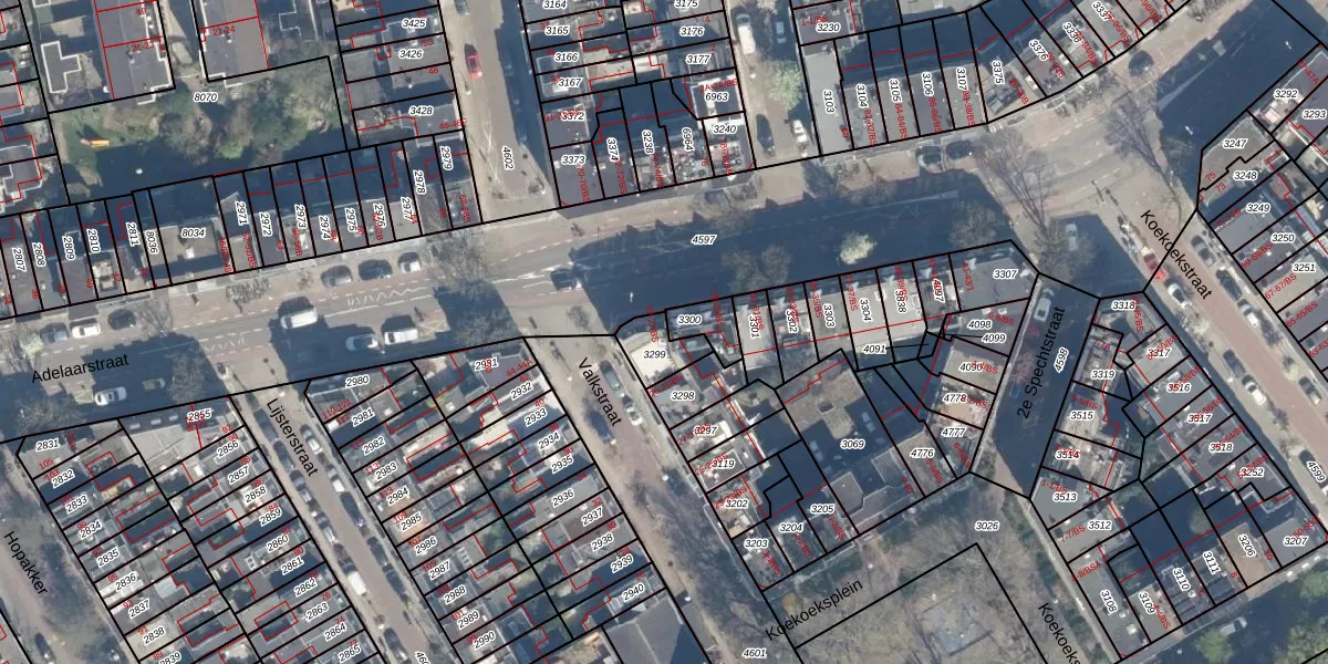 Het perceel waarop Adelaarstraat 27 staat heeft een oppervlakte van 90 m². Dit is een klein perceel. De perceeloppervlakte wordt geregistreerd door het Kadaster. Gedetailleerde informatie over de maten van dit perceel kunt u vinden in het rapport Kadastrale kaart met maatvoering van Adelaarstraat 27.