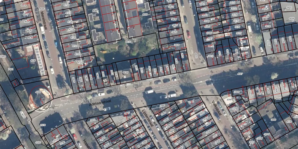 Het perceel waarop Adelaarstraat 56-A staat heeft een oppervlakte van 61 m². Dit is een klein perceel. De perceeloppervlakte wordt geregistreerd door het Kadaster. Gedetailleerde informatie over de maten van dit perceel kunt u vinden in het rapport Kadastrale kaart met maatvoering van Adelaarstraat 56-A.