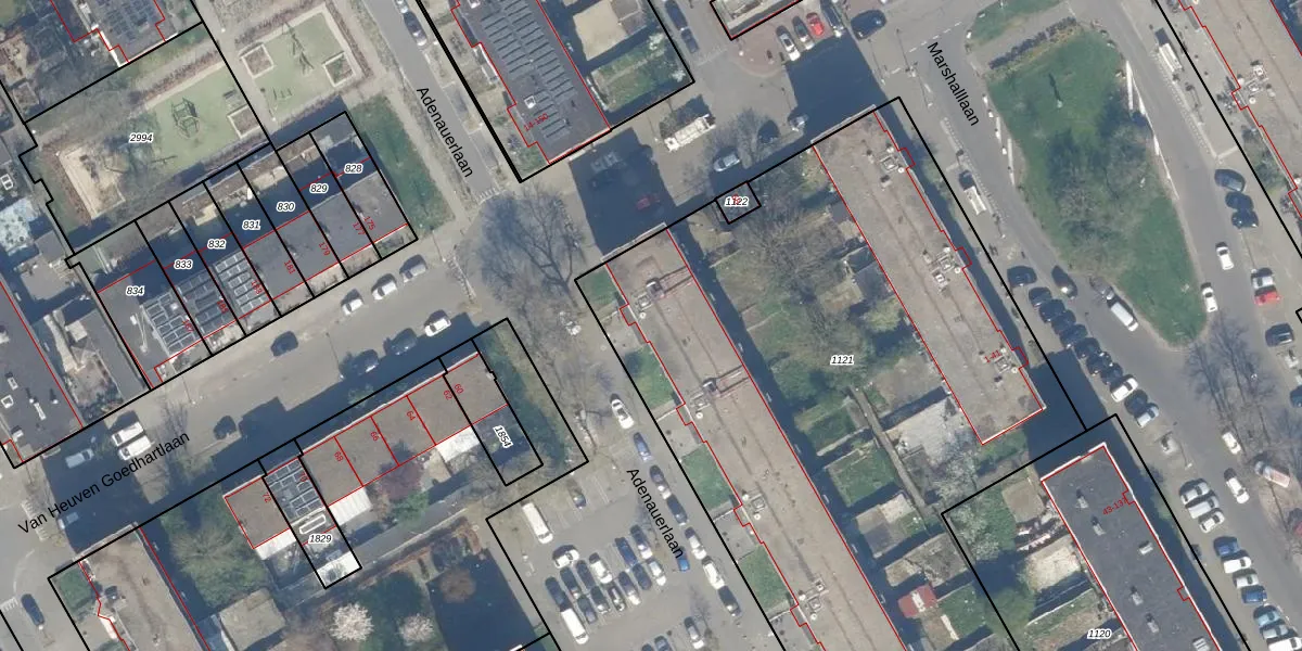 Het perceel waarop Adenauerlaan 152 staat heeft een oppervlakte van 5879 m². Dit is een zeer groot perceel. De perceeloppervlakte wordt geregistreerd door het Kadaster. Gedetailleerde informatie over de maten van dit perceel kunt u vinden in het rapport Kadastrale kaart met maatvoering van Adenauerlaan 152.