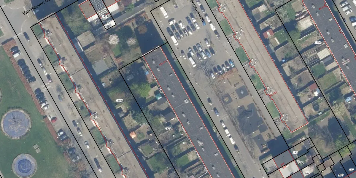 Het perceel waarop Adenauerlaan 161 staat heeft een oppervlakte van 3593 m². Dit is een zeer groot perceel. De perceeloppervlakte wordt geregistreerd door het Kadaster. Gedetailleerde informatie over de maten van dit perceel kunt u vinden in het rapport Kadastrale kaart met maatvoering van Adenauerlaan 161.