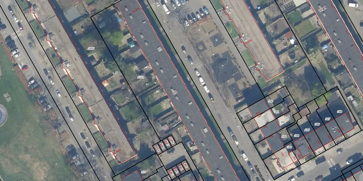 Het perceel waarop Adenauerlaan 193 staat heeft een oppervlakte van 3593 m². Dit is een zeer groot perceel. De perceeloppervlakte wordt geregistreerd door het Kadaster. Gedetailleerde informatie over de maten van dit perceel kunt u vinden in het rapport Kadastrale kaart met maatvoering van Adenauerlaan 193.