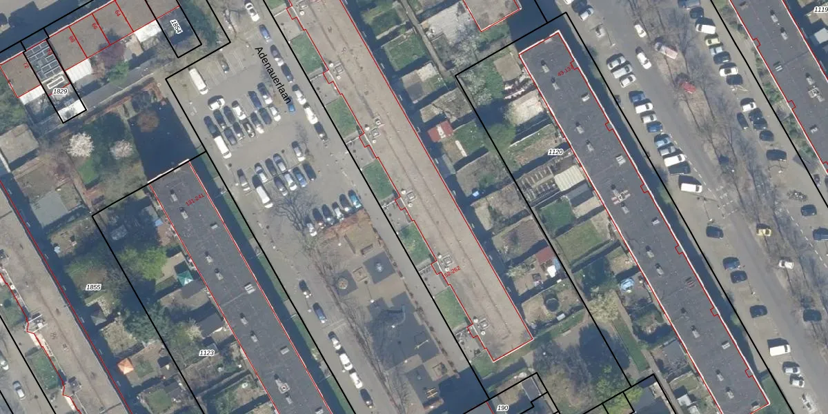 Het perceel waarop Adenauerlaan 216 staat heeft een oppervlakte van 5879 m². Dit is een zeer groot perceel. De perceeloppervlakte wordt geregistreerd door het Kadaster. Gedetailleerde informatie over de maten van dit perceel kunt u vinden in het rapport Kadastrale kaart met maatvoering van Adenauerlaan 216.