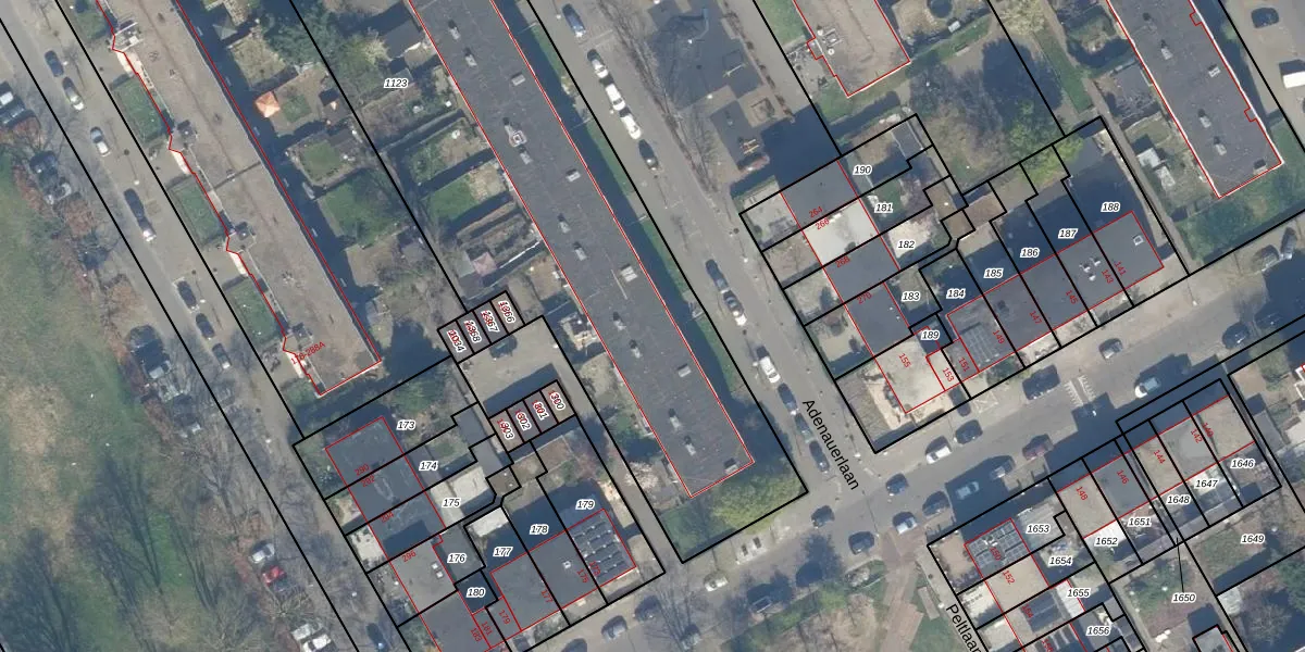 Het perceel waarop Adenauerlaan 225 staat heeft een oppervlakte van 3593 m². Dit is een zeer groot perceel. De perceeloppervlakte wordt geregistreerd door het Kadaster. Gedetailleerde informatie over de maten van dit perceel kunt u vinden in het rapport Kadastrale kaart met maatvoering van Adenauerlaan 225.