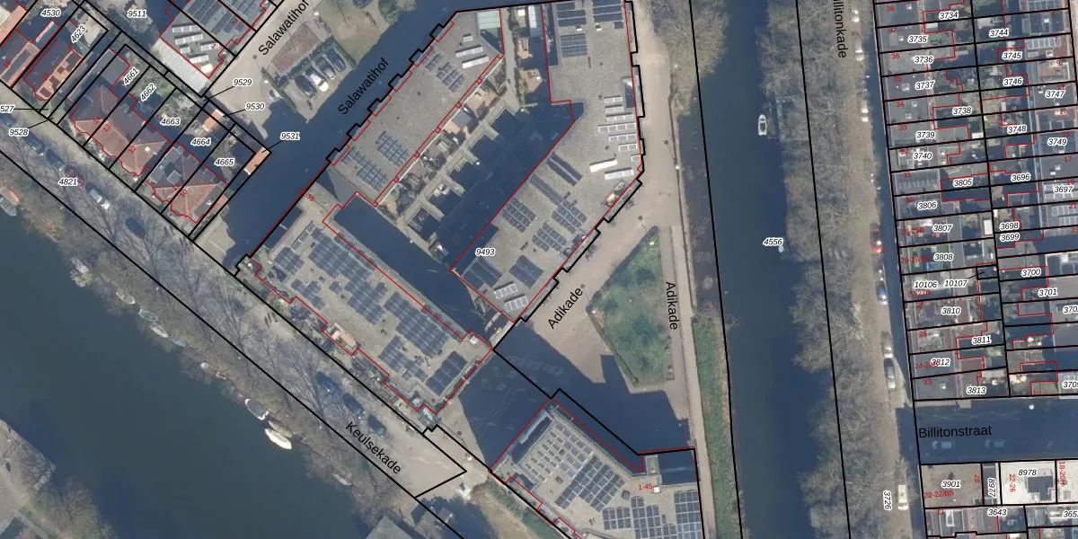 Het perceel waarop Adikade 8 staat heeft een oppervlakte van 4510 m². Dit is een zeer groot perceel. De perceeloppervlakte wordt geregistreerd door het Kadaster. Gedetailleerde informatie over de maten van dit perceel kunt u vinden in het rapport Kadastrale kaart met maatvoering van Adikade 8.