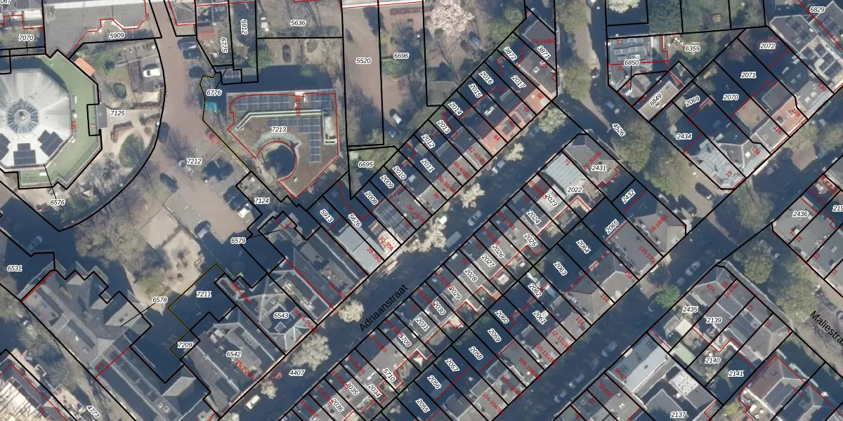 Het perceel waarop Adriaanstraat 34 staat heeft een oppervlakte van 81 m². Dit is een klein perceel. De perceeloppervlakte wordt geregistreerd door het Kadaster. Gedetailleerde informatie over de maten van dit perceel kunt u vinden in het rapport Kadastrale kaart met maatvoering van Adriaanstraat 34.