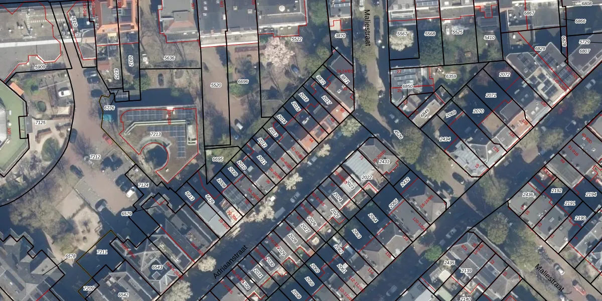 Het perceel waarop Adriaanstraat 42 staat heeft een oppervlakte van 87 m². Dit is een klein perceel. De perceeloppervlakte wordt geregistreerd door het Kadaster. Gedetailleerde informatie over de maten van dit perceel kunt u vinden in het rapport Kadastrale kaart met maatvoering van Adriaanstraat 42.