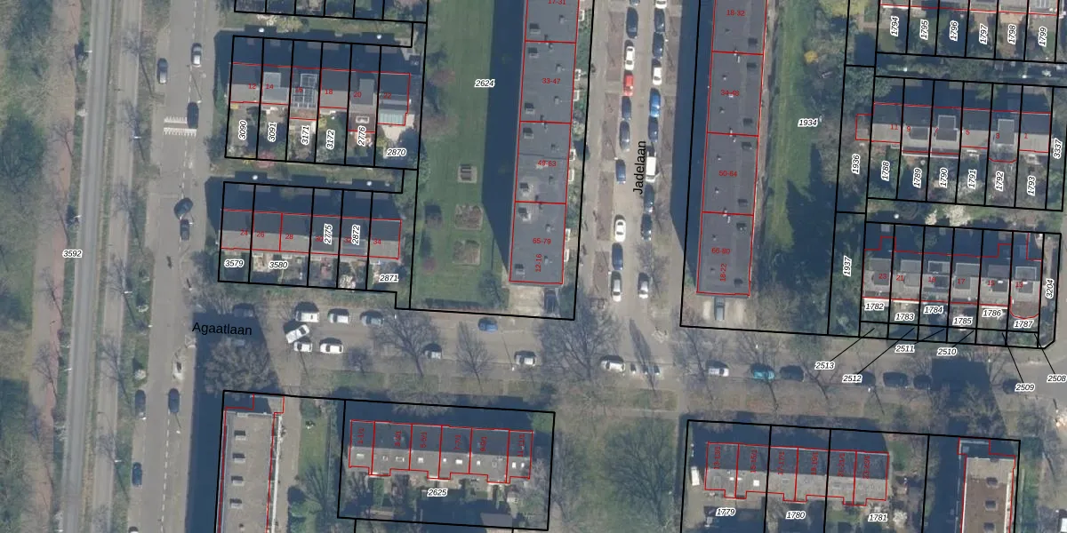Het perceel waarop Agaatlaan 14 staat heeft een oppervlakte van 2466 m². Dit is een zeer groot perceel. De perceeloppervlakte wordt geregistreerd door het Kadaster. Gedetailleerde informatie over de maten van dit perceel kunt u vinden in het rapport Kadastrale kaart met maatvoering van Agaatlaan 14.