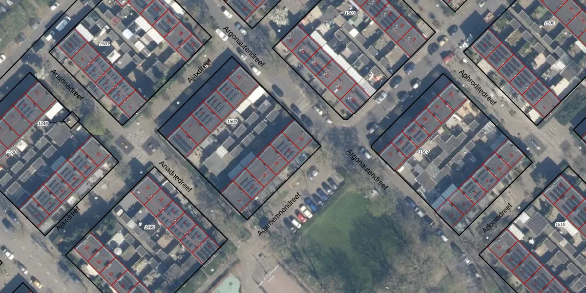 Het perceel waarop Agamemnondreef 10 staat heeft een oppervlakte van 1540 m². Dit is een zeer groot perceel. De perceeloppervlakte wordt geregistreerd door het Kadaster. Gedetailleerde informatie over de maten van dit perceel kunt u vinden in het rapport Kadastrale kaart met maatvoering van Agamemnondreef 10.